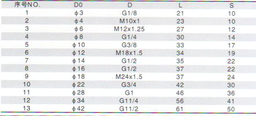卡套接頭的工作原理是將管插入卡套內(nèi),利用卡套螺母鎖緊,抵觸卡套,切入管子而密封。它與管連接時不需焊接,有利于防火、防爆和高空作業(yè),并能消Chu焊接不慎帶來的弊端。因而它是煉油、化工、石油、天然氣、食品、制藥、儀器儀表等系統(tǒng)自控裝置管路中的一種較為先Jin的連接件。適用于油、氣、水等管路連接。制造標(biāo)準(zhǔn):GB3733.1~3765-83公稱壓力:25MPa--40MPa適用溫度:≤450℃適用介質(zhì):油、水、氣等非腐蝕性或有腐蝕性介質(zhì)制造材料:304 316 20#配管:Φ4~Φ42的普通級精度鋼管錐管螺紋:ZGGNPT等卡套接頭概述: 卡套式管接頭由三部分組成:接頭體、卡套、螺母。當(dāng)卡套和螺母套在鋼管上插入接頭體后,旋緊螺母時,卡套前端外側(cè)與接頭體錐面貼合,內(nèi)刃均勻地咬入鋼管,形成有Xiao密封。